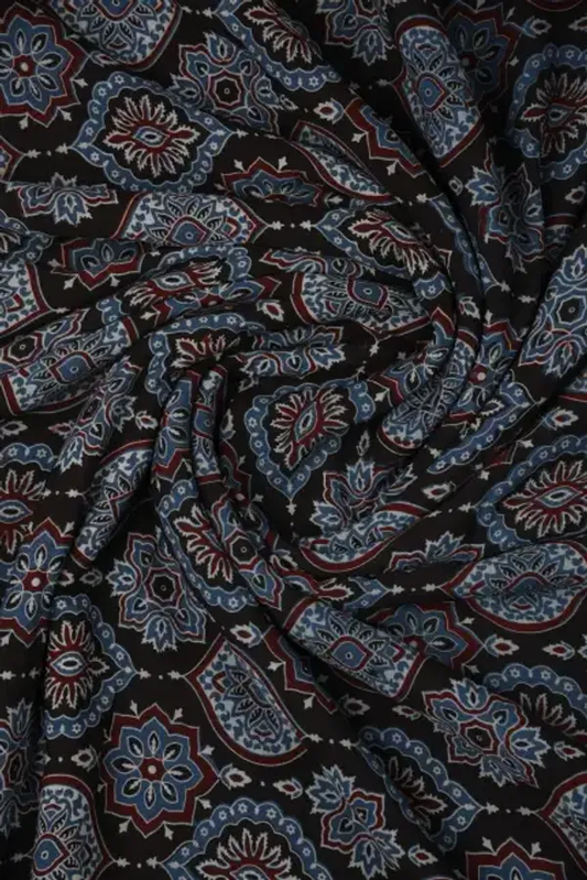 Black Color Dola Cotton Fabric Kalamkari Print Saree With Printed Blouse Piece